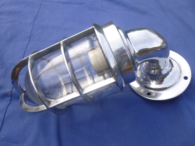 These are one of my bestsellers, classic style reproduction of a ship light in polished aluminium. They are light making them good to fit on walls that do not like heavy things on them. They are stylish and take the same glass as the old original type so proportion and size is correct. Occasionally I get one with an old glass, like in the pictures, but most have a new one. These lights do have the odd mark or imperfection, this does however give them a more authentic look. The fittings are the right type too, tasteful ceramic bayonet type. They can be mounted cage facing up if you prefer which I know some customers have done. These are quality pieces and would enhance any space they were put in. These lights require wiring up correctly. They have good seals however they are not rated for wet area's or for outdoor use. As these are stock photographs if you want pictures of the lights I will actually ship you please get in touch, I will select them so you can view and decide on the ones you want. If you are looking for large quantities or you are a re-seller please get in touch. I'm happy to export anywhere. Please scroll down for image gallery. Please note each light is very unique, the condition, marks and patina can vary as can the glass. I do my best to match them when customers buy more than 1 but however hard I try there are always at least subtle differences. |
